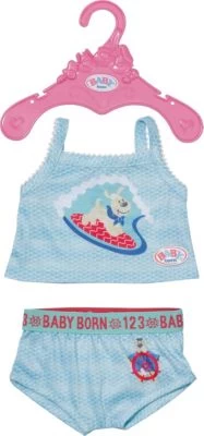Auch Unterwäsche darf in BABY borns Kleiderschrank natürlich nicht fehlen. Mit diesem Set, bestehend aus Unterhose und Unterhemd ist sie gleich umfangreich ausgestattet. Ein verspieltes Muster darf natürlich auch hier nicht fehlen. Außerdem enthalten ist ein Bügel. mit dem die Kleidung verstaut werden kann.