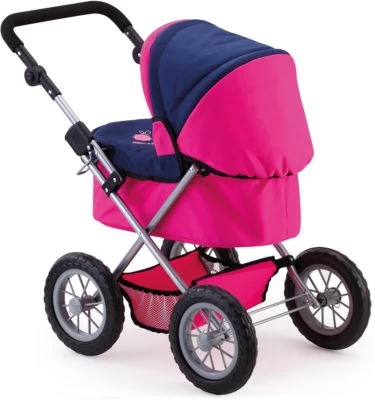 Der Puppenwagen Trendy in Pink-Blau wird jeder Puppenmutti viel Freude bereiten. Die strahlenden Farben lassen den modernen Wagen besonders schön aussehen. Der Wagen bietet Platz für Puppen bis 46 cm und viel Spielspaß. Dank des höhenverstellbaren Griffs kann er ohne Probleme mit der kleinen oder der großen Schwester geteilt werden und das Kind während seines Wachstums begleiten. Zusammengeklappt kann der Kinderwagen zwischen Spaziergängen platzsparend untergebracht werden. Auch für kleine Touren zum Kaufladen im Kinderzimmer ist der Puppenwagen mit Einkaufsnetz und Tasche bestens ausgerüstet. Auf Ausflügen kann darin natürlich auch Verpflegung für die Puppen und die Puppenmutti untergebracht werden. Trendy ist ein echtes Allround-Talent.
