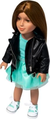 I’m A Girly Fashion Doll LUCY ist unser Rock-Rebel. Sie hat braune Augen und langes, seidig braunes Haar, das austauschbar ist. Ihr T-Shirt, ihr Tüllrock und ihre Turnschuhe sind alle in trendigem Türkis gehalten, und ihre coole schwarze Kunstlederjacke ist mit echten Reißverschlussdetails und einer Gürtelschnalle verziert. Sie ist ca. 48 Zentimeter groß. Möchten Sie ihren Look ändern? Mit den austauschbaren Perücken von I’m A Girly ist das kein Problem. Sie können sogar Lucys Haare schneiden! Wie bitte?? Ja! Trauen Sie sich, ihr die Haare abzuschneiden und tauschen Sie danach einfach die Perücke aus, wenn Sie möchten, dass sie wieder lange Haare hat. Ein perfektes Geschenk für kreative Kinder, die ihre Puppe individuell gestalten möchten.