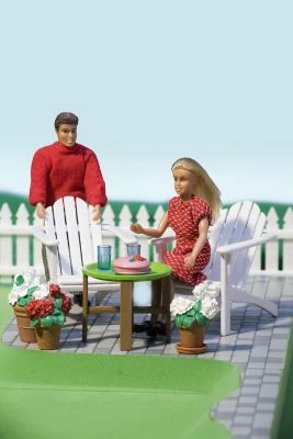 Für eine tolle Zeit im Freien sorgt dieses Lundby Gartenmöbel-Set, das eine prima Ergänzung für Lundby Puppenhäuser ist. Zur Ausstattung gehören zwei Gartenstühle, ein Tisch, zwei Gläser, eine Prinzessinnentorte sowie drei hübsche Blumentöpfe. Hier können die Puppen Neuigkeiten austauschen und schönes Wetter genießen.