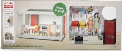 Das tolle Puppenhaus Starter-Set der Marke Lundby bereitet Kindern großen Spielspaß! Der Raum mit Tür und Fenster ist von drei Seiten bespielbar, da die Front offen ist und die Rück- und eine Seitenwand sich herausschieben lassen. Der Raum lässt sich mit den enthaltenen Möbeln im Nu in eine Küche verwandeln, in der die beiden Puppen und ihre Haustiere essen, kochen und vieles mehr.