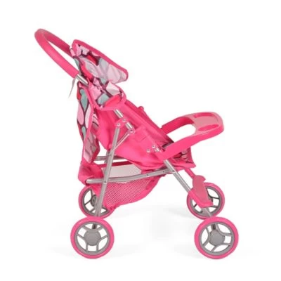 In den rosa Puppenwagen 9617 werden sich kleine Mädchen sofort verlieben. Er passt perfekt in die rosarote Prinzessinnenwelt und wird bei jeder Gelegenheit mit der Lieblingspuppe spazieren gefahren. Tolle Extras sind im Lieferumfang dabei wie zum Beispiel ein faltbares Sonnendach, ein Sicherheitsgurt, eine Dekorplatte für Getränke, eine extra Tasche und ein geräumiger Aufbewahrungskorb bietet jede Menge Platz für Zubehör für die Lieblingspuppe. Die Rückenlehne des Puppenbuggys lässt sich verstellen, damit die Lieblingspuppe auch unterwegs schlafen kann. Geeignet ist der Puppenbuggy für Kinder ab 3 Jahre und kann sowohl drinnen wie auch draußen genutzt werden. Die Schiebehöhe beträgt 50 cm.