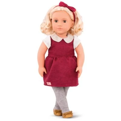 Bringe dich mit Ivory in Feiertagsstimmung! Die Our Generation Puppe Ivory ist schon jetzt in Weihnachtsstimmung und kann die Feiertage kaum erwarten! Die winterliche Puppe hat haselnussbraune Augen und kurzes, gewelltes blondes Haar, das sich gut kämmen und stylen lässt! Sie trägt eine graue, warme Wollstrumpfhose, bequeme Schuhe, ein rotes Twill-Kleid mit glitzerndem Kragen, das sie sich für den besonderen Anlass ausgesucht hat. Dazu hat sie eine passende wunderschöne Schleife an ihrem Haarband, um zu zeigen, wie sehr sie sich auf Weihnachten freut! Verbringe mit Ivory an deiner Seite wunderschöne weihnachtliche Tage und feiert gemeinsam die wohl schönste Zeit im Jahr! Denn der Winter ist die Lieblingsjahreszeit von Ivory, und Backen und festlich Dekorieren sind nur einige Dinge, die sie bereits im Kopf hat!