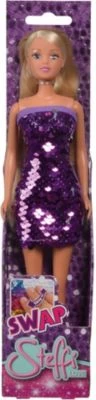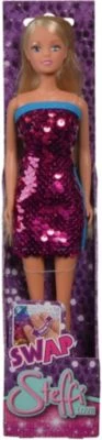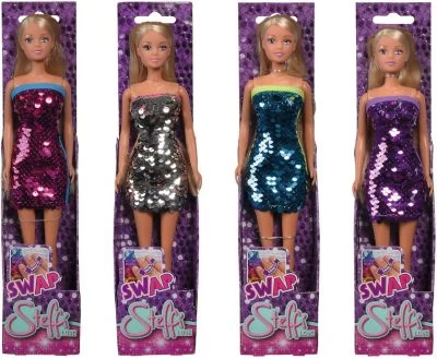 Swap it! Steffi trägt ein atemberaubendes Paillettenkleid mit Swap-Effekt. Streicht man mit den Händen über die Pailletten, so ändern diese ihre Farbe. Somit kann Steffi zwei Looks mit nur einem Kleid tragen. Zu beiden Kleidern kombiniert die Fashionista tolle High Heels.